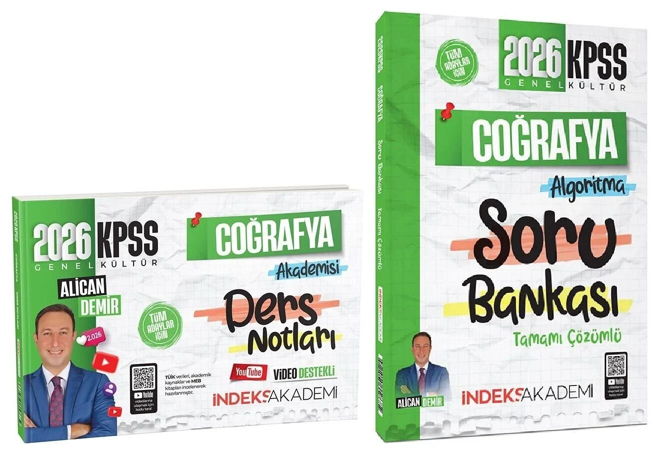 İndeks Akademi 2026 KPSS Coğrafya Akademisi Video Ders Notları + Soru Bankası 2 li Set - Alican Demir İndeks Akademi Yayıncılık