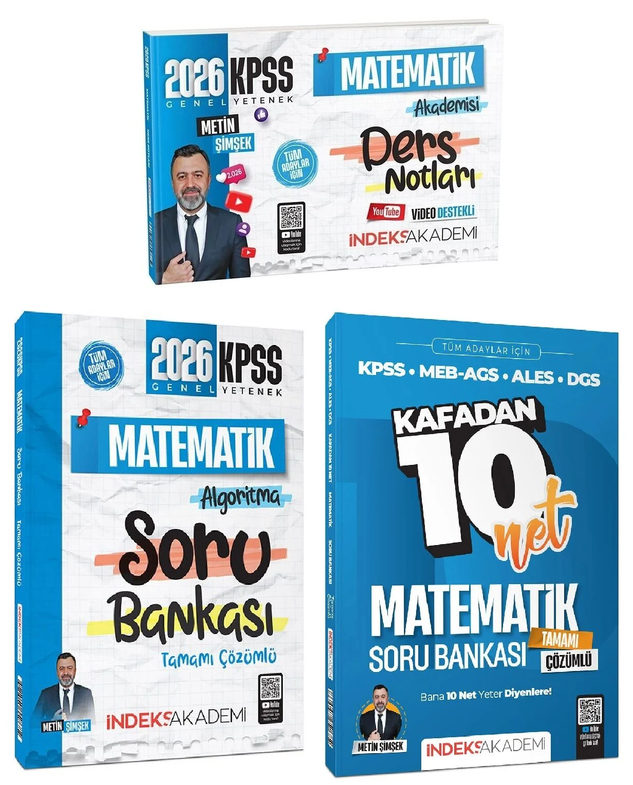 İndeks Akademi 2026 KPSS Matematik Akademisi Video Ders Notları + Soru Bankası 3 lü Set - Metin Şimşek İndeks Akademi Yayıncılık
