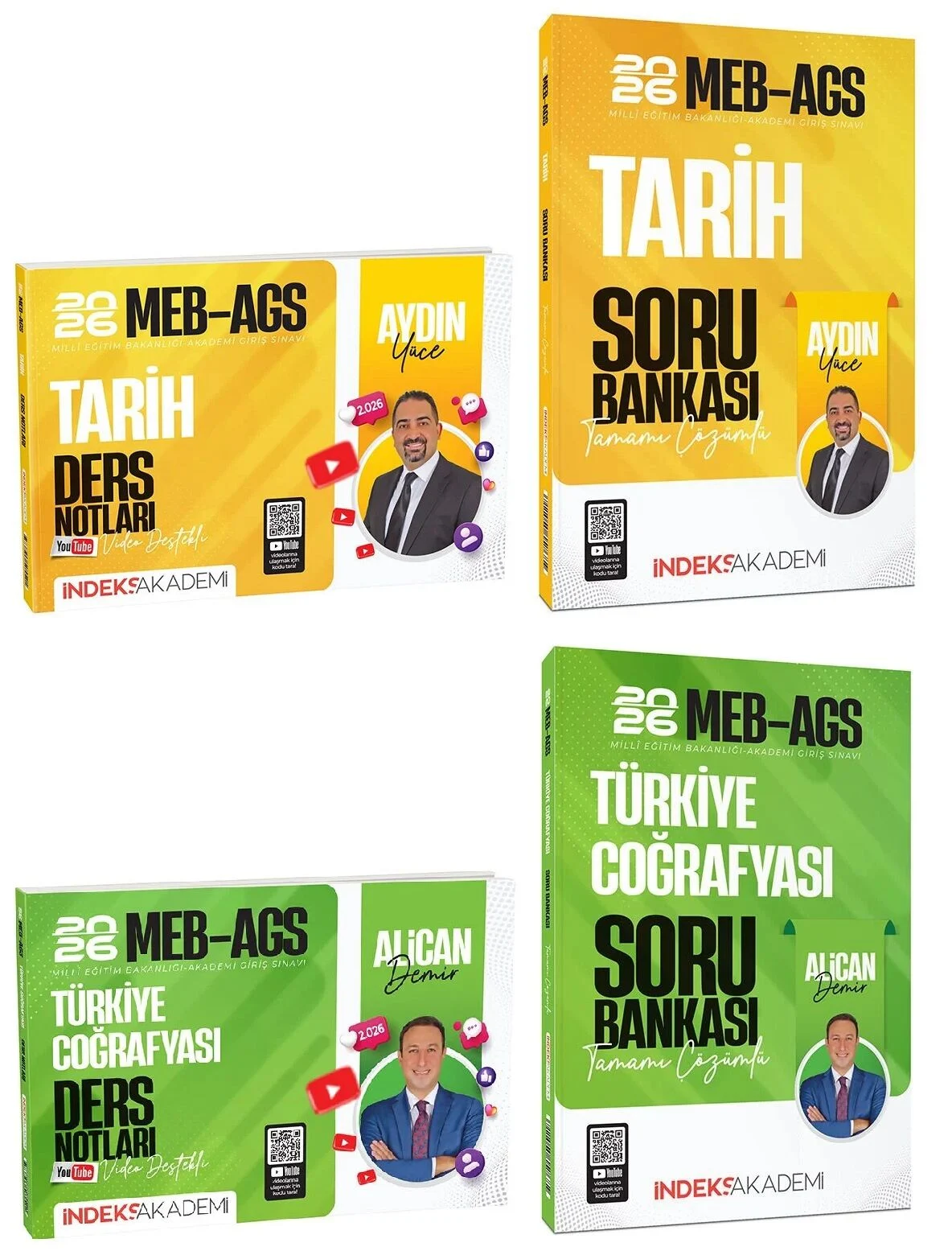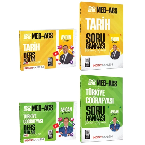 İndeks Akademi 2026 MEB-AGS Tarih + Türkiye Coğrafyası Ders Notları + Soru Bankası 4 lü Set - Aydın Yüce, Alican Demir İndeks Akademi Yayıncılık