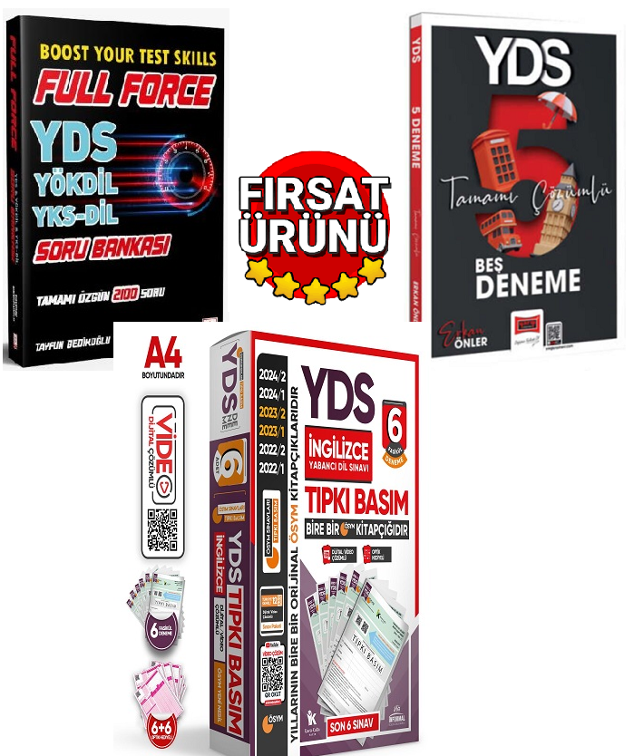 İnformal Yayınları Yds İngilizce Son 6 Sınav Çıkmış Sorular+Tercih Yayınları YDS Full Force İngilizce Soru Bankası+Yargı Yayınları YDS 5 Deneme Tamamı Çözümlü Seti(3Kitap)