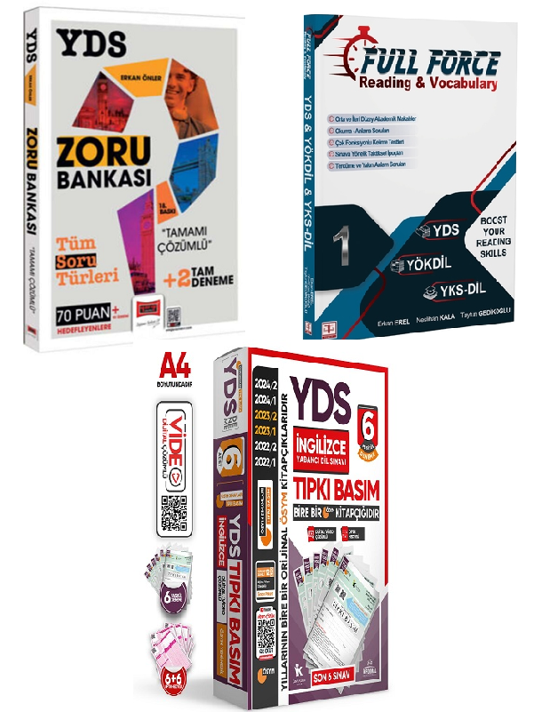İnformal Yayınları YDS Son 6 Sınav Çıkmış Sorular+Yargı Yayınları YDS Tamamı Çözümlü Zoru Bankası +2 Deneme İlaveli+Tercih Yayınları Full Force Reading&Vocabulary (3Lü Set)