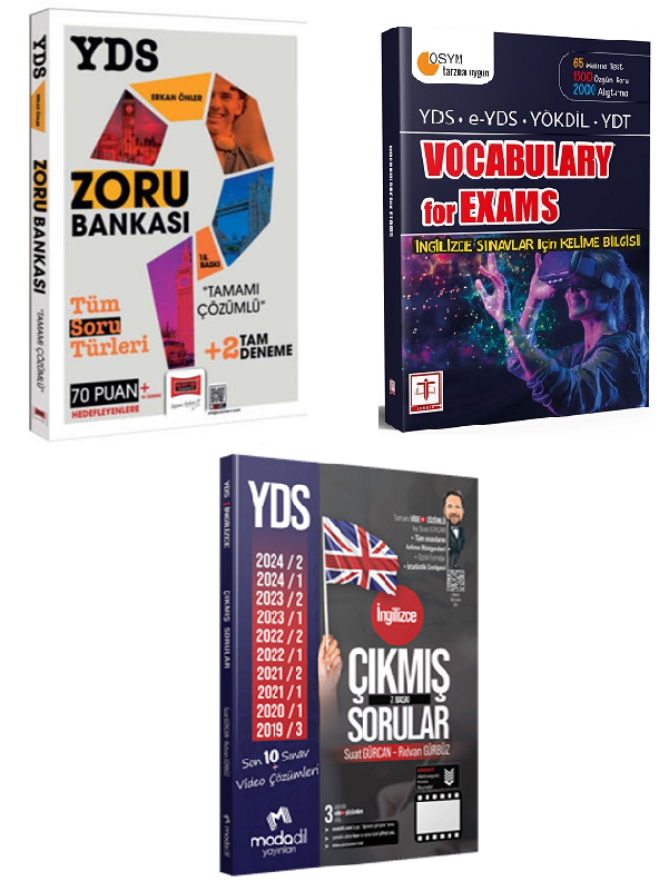 Modadil Yayınları YDS Son 10 Sınav Çıkmış Sorular+Yargı Yayınları 2025 YDS Tamamı Çözümlü Zoru Bankası +2 Deneme İlaveli+Tercih Yayınları Vocabulary For Exams (3Lü Set)