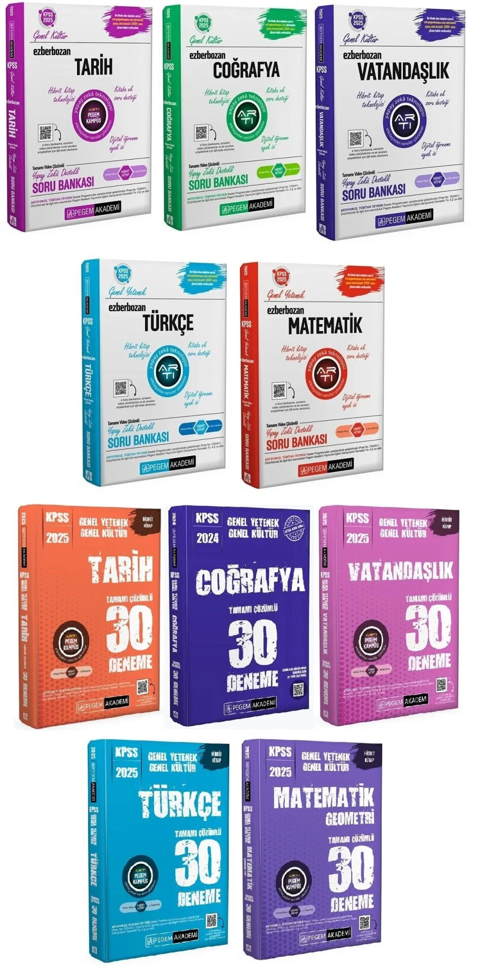 Pegem KPSS Genel Yetenek Genel Kültür Ezberbozan Soru Bankası + 150 Deneme 10 lu Set Pegem Akademi Yayınları
