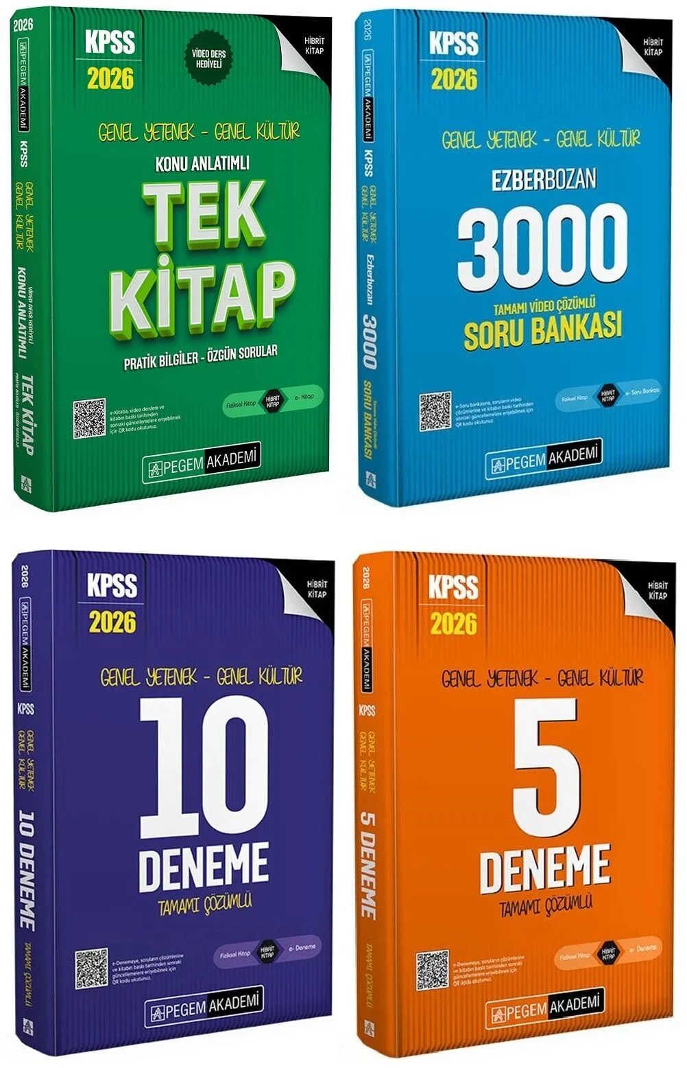 Pegem KPSS Genel Yetenek Genel Kültür Konu + Soru Bankası + 10+5 Deneme 4 lü Set Pegem Akademi Yayınları