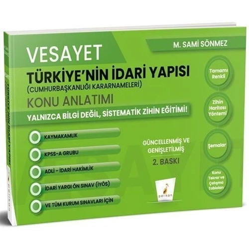 Pelikan VESAYET Kaymakamlık KPSS A Grubu Hakimlik Türkiyenin İdari Yapısı, Cumhurbaşkanlığı Kararnameleri Konu Anlatımı - M. Sami Sönmez Pelikan Yayınları