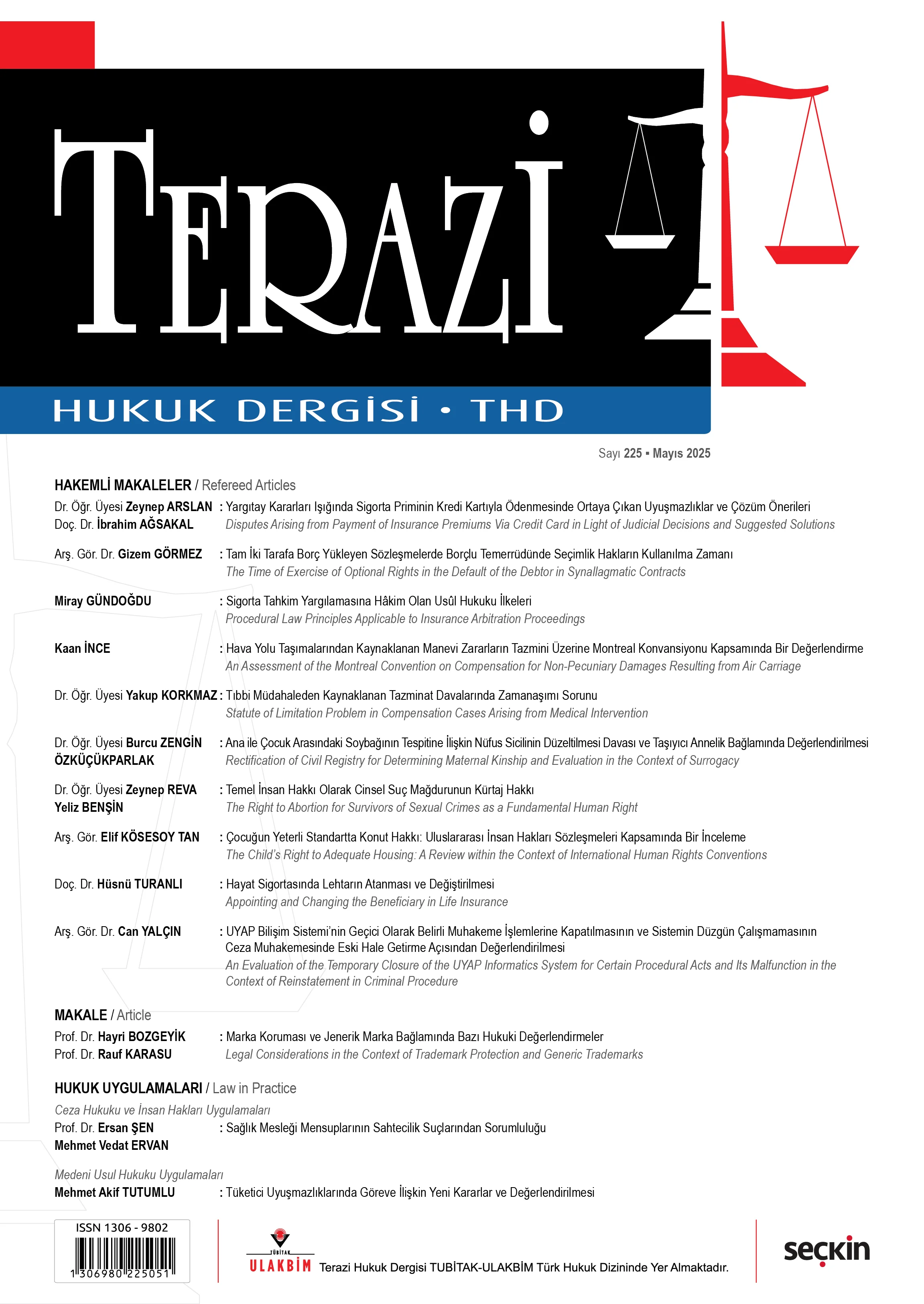 Seçkin Yayıncılık Terazi Hukuk Dergisi Sayı:225 Mayıs 2025-Mutlu Dinç