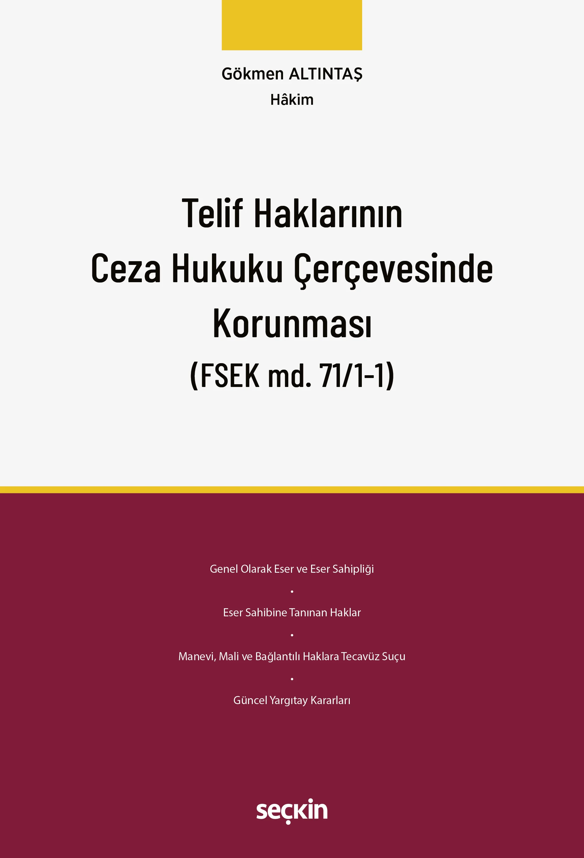 Seçkin Yayınevi Telif Haklarının Ceza Hukuku Çerçevesinde Korunması (Gökmen Altıntaş)
