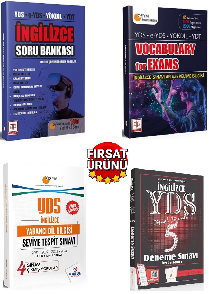YDS Soru Bankası-YDS Vocabulary For Exams-YDS 5 Deneme-YDS Çıkmış Sorular (4 Kitapçık 2021-2024)(4Kitaplık Set)