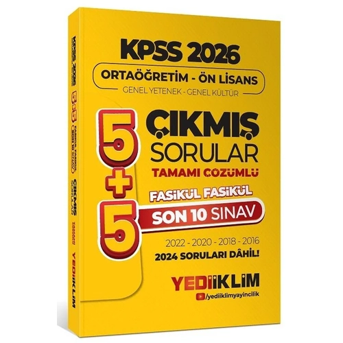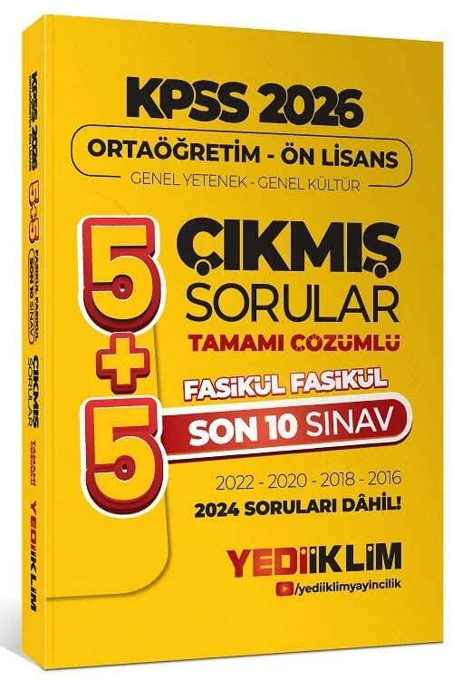 Yediiklim 2026 KPSS Lise Ortaöğretim Ön Lisans Çıkmış Sorular 5+5 Son 10 Sınav Çözümlü Fasikül Yediiklim Yayınları
