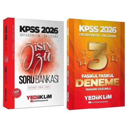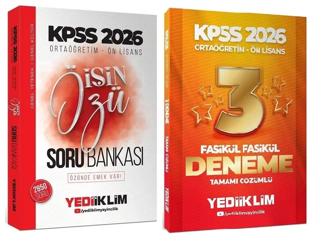Yediiklim 2026 KPSS Lise Ortaöğretim Ön Lisans İşin Özü Soru Bankası + 3 Deneme 2 li Set Yediiklim Yayınları