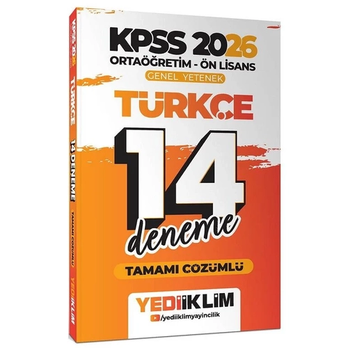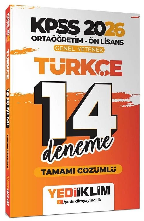 Yediiklim 2026 KPSS Lise Ortaöğretim Ön Lisans Türkçe 14 Deneme Çözümlü Yediiklim Yayınları