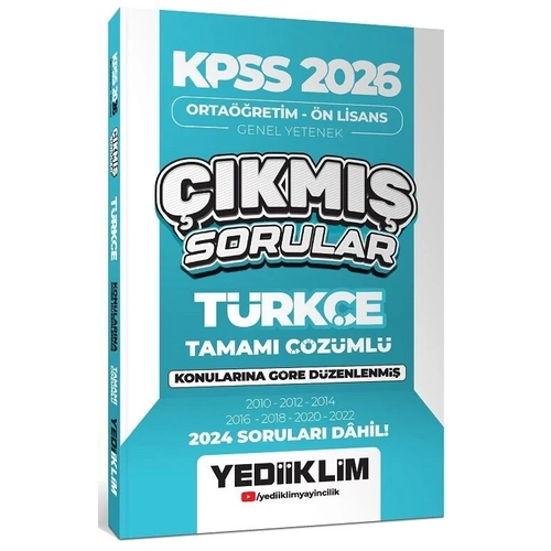 Yediiklim 2026 KPSS Lise Ortaöğretim Ön Lisans Türkçe Çıkmış Sorular Konularına Göre Çözümlü Yediiklim Yayınları