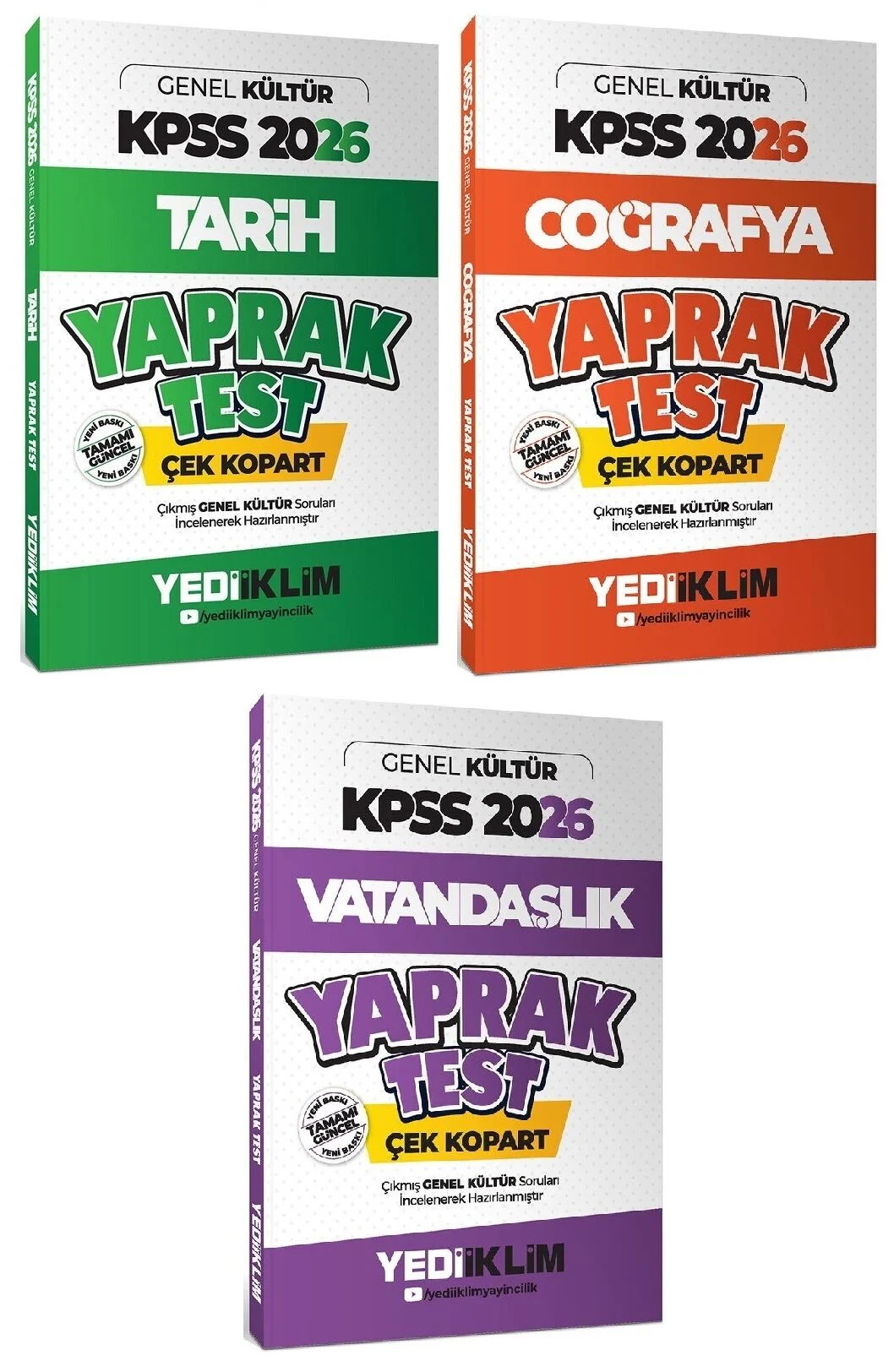 Yediiklim 2026 KPSS Tarih + Coğrafya + Vatandaşlık Yaprak Test 3 lü Set Yediiklim Yayınları